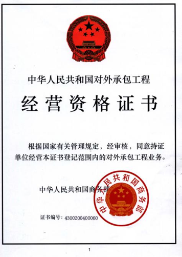 正式獲得商務(wù)部頒發(fā)的對外經(jīng)濟合作經(jīng)營資質(zhì)資格證書。