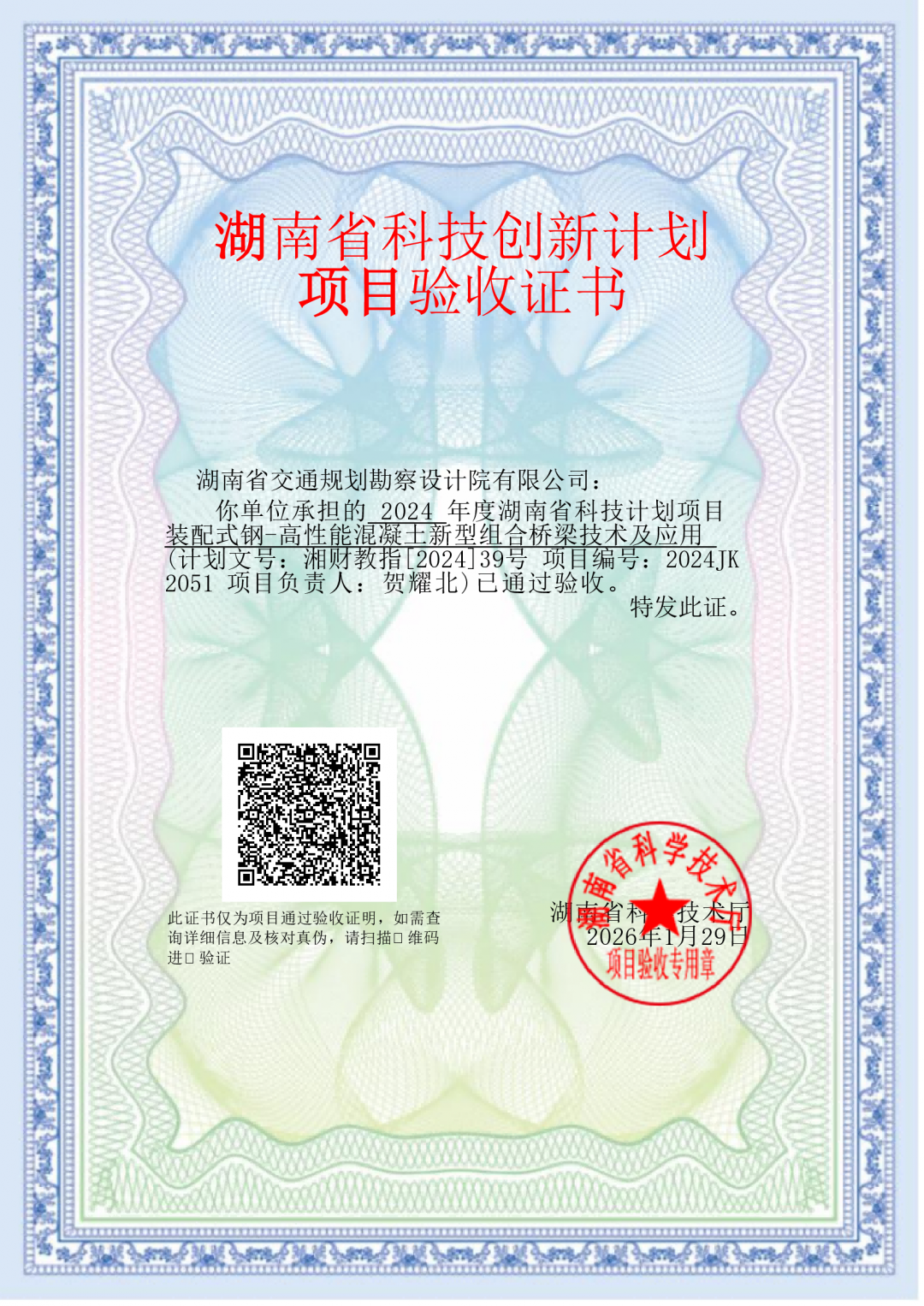 近日,湖南省科學(xué)技術(shù)廳組織專家對湖南省交通規(guī)劃勘察設(shè)計院股份有限公司牽頭承擔的湖南省重點研發(fā)計劃項目“裝配式鋼-高性能混凝土新型組合橋梁技術(shù)及應(yīng)用”進行綜合績效評價。專家組一致認為,項目已全面完成任務(wù)書規(guī)定的各項指標,成果豐碩,創(chuàng)新顯著,同意通過驗收。該項目是2024...