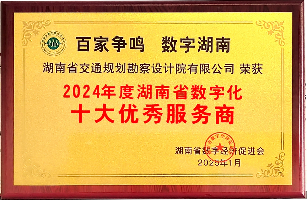 1月4日,“2025長江數字經濟發(fā)展大會暨第五屆湖南省數字經濟論壇”在湖南長沙舉行,湖南省工業(yè)和信息化廳黨組成員、總經濟師熊琛出席大會并講話。湖南省交通規(guī)劃勘察設計院有限公司榮膺“2024年度湖南省數字化十大優(yōu)秀服務商”,也是省屬國企中唯一一家入選企業(yè),彰顯了其在數字...